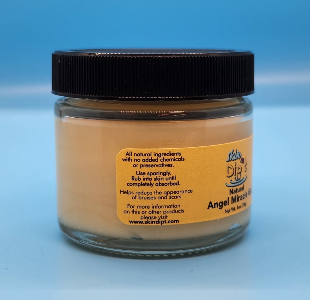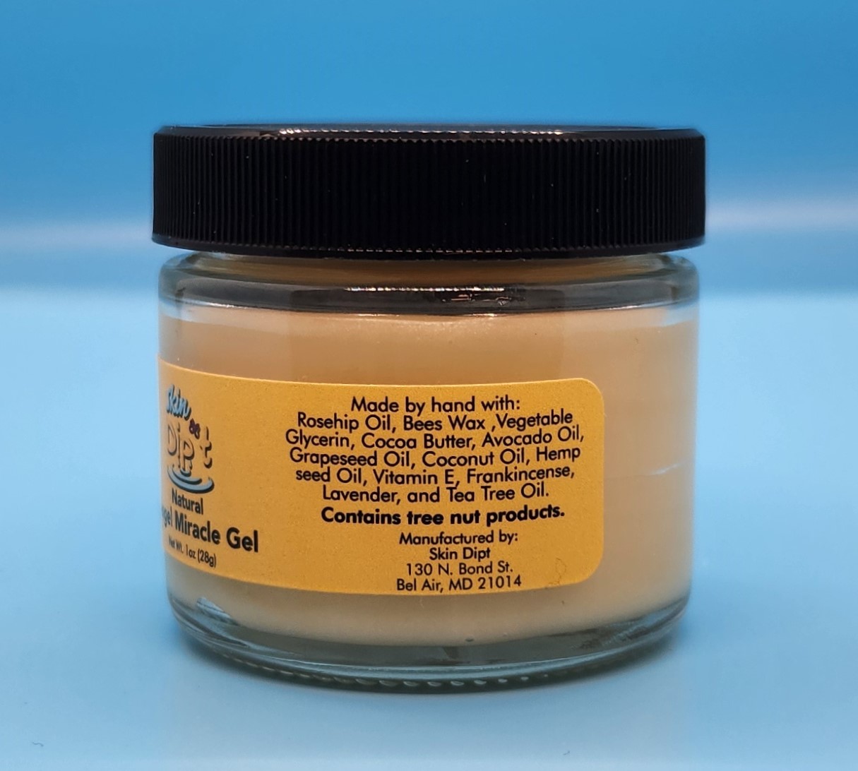 This gel was named after my mother who not only believed in angels, she also believed in miracles. Inside this little gel is just that – a miracle. Loaded with fatty acids and vitamin A from the abundance of rosehip, this gel will promote healing and reduce the discoloration of scars and bruising. Even if you aren’t bruised, this gel will moisturize and heal the driest of skin. Rub in just a little dab to let your skin benefit from this miracle gel.